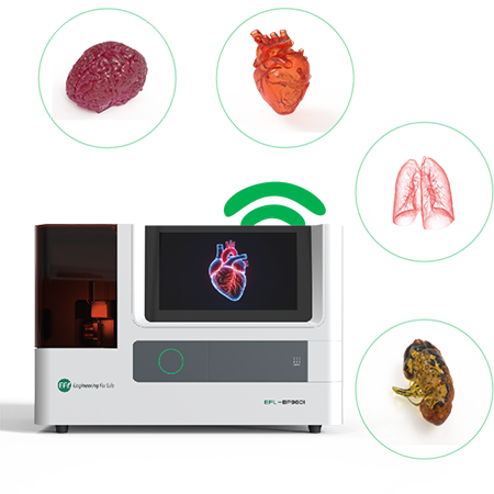 EFL-BP9601具备超快的打印速度,可满足水凝胶模型的快速成形,使细胞与生物组分保持活性。墨水自支撑的特性也可以满足悬空结构的快速成形,并且具备不错的打印精度。可以很好地适配载细胞打印、水凝胶精细结构快速构建等应用场景。