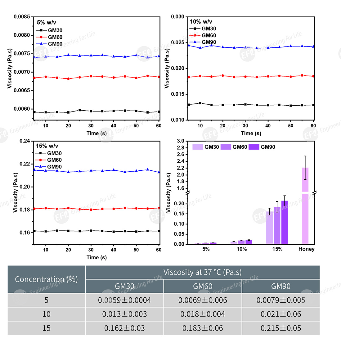 Fig 2. Rheological properties of GelMA: viscosity (shearing rate: 10s-1, 37 ℃)