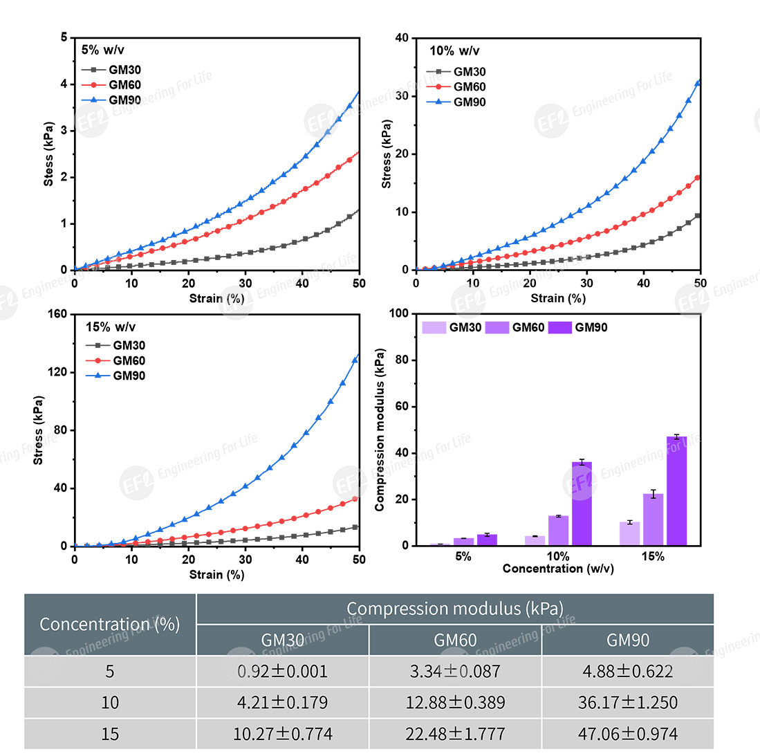 Fig 5. Compressive properties of GelMA: EFL-LS-1601-405 light source curing 30s