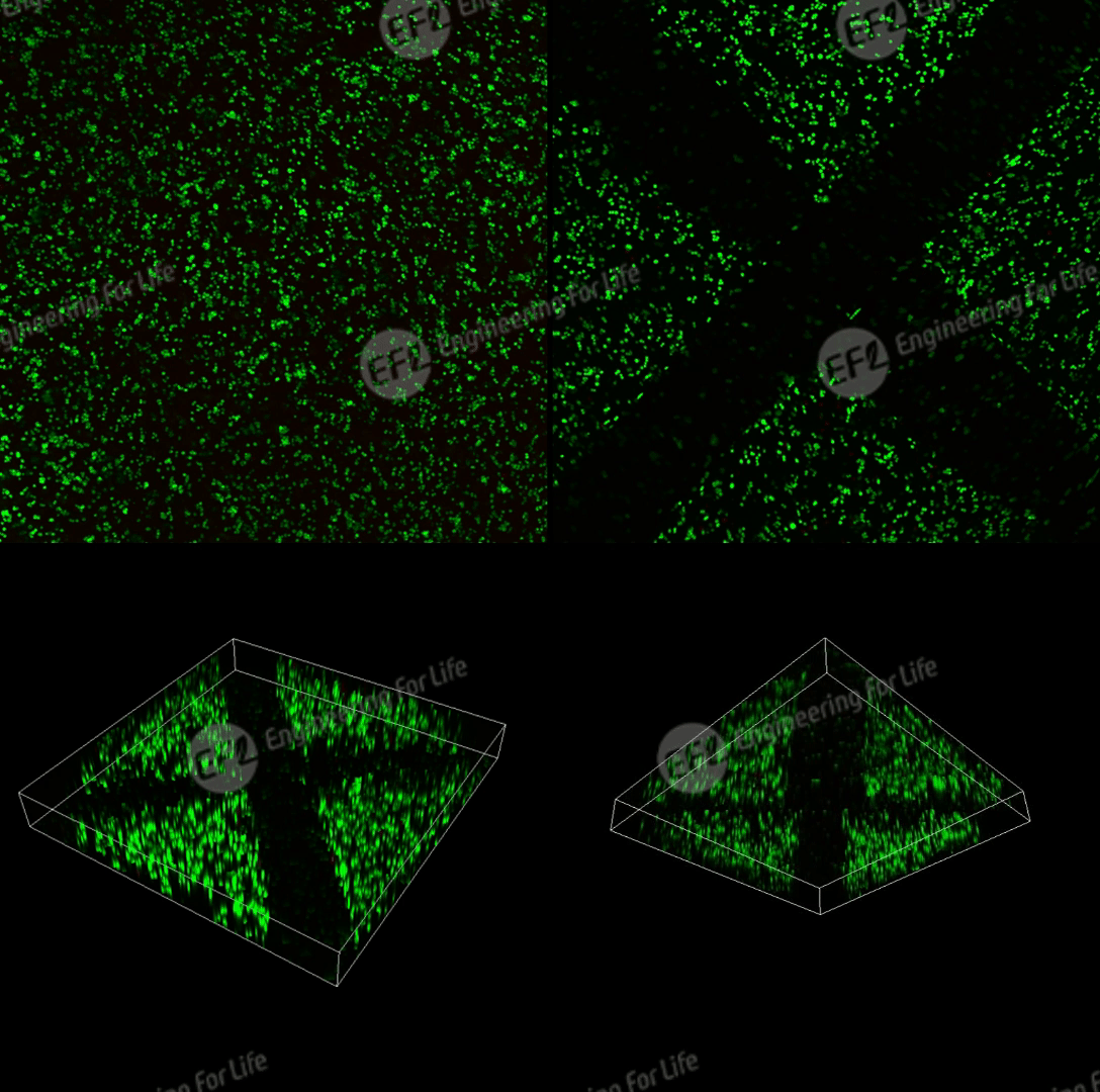 图6. HUVECs细胞在AlgMA水凝胶中三维培养的实验效果:接种后第1天观察