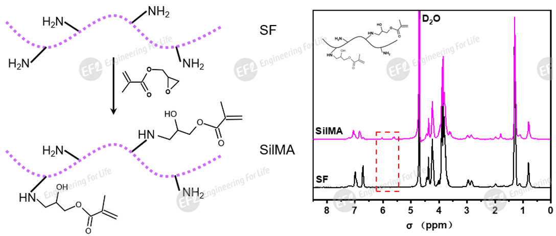 图1. EFL-SilMA 制备过程及核磁氢谱