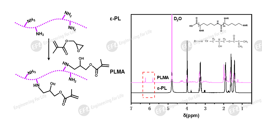 甲基丙烯酰化聚赖氨酸(PLMA)是通过甲基丙烯酸缩水甘油酯对聚赖氨酸进行甲基丙烯酰化改性,在ε-PL分子上引入双键。由于便携的成形方式和良好的生物兼容性,基于PLMA的材料体系可被广泛应用于创面敷料、抗菌涂层等。