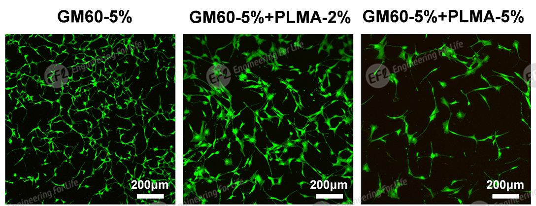 图5. PLMA复合水凝胶表面的MC3T3-E1细胞培养效果(Day1)